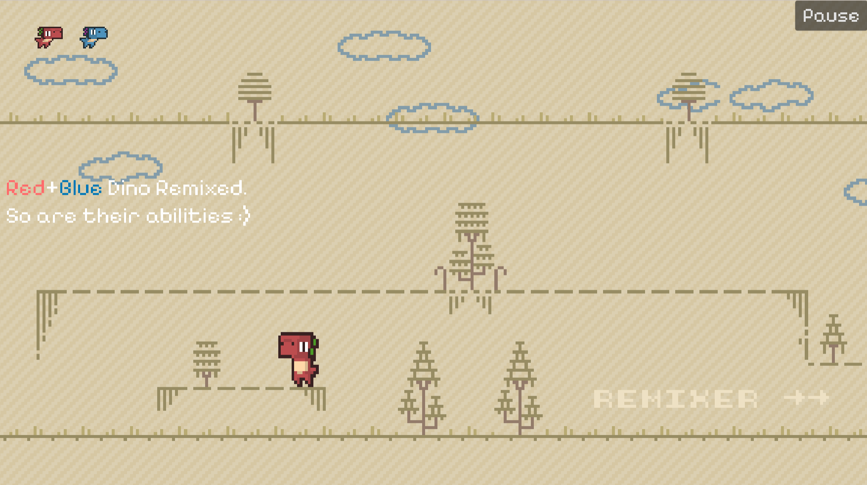 Re-cause is a colorful and cute little platformer about Dino's. The goal is to traverse through multiple levels by RE-MIXING the abilities of Dino's and Re-THINKING the strategy.